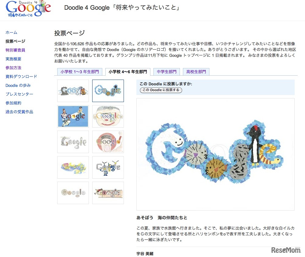 Google(グーグル)は10月31日、全国の小中高生を対象としたロゴデザインコンテスト「Doodle 4 Google」のオンライン投票を開始した。