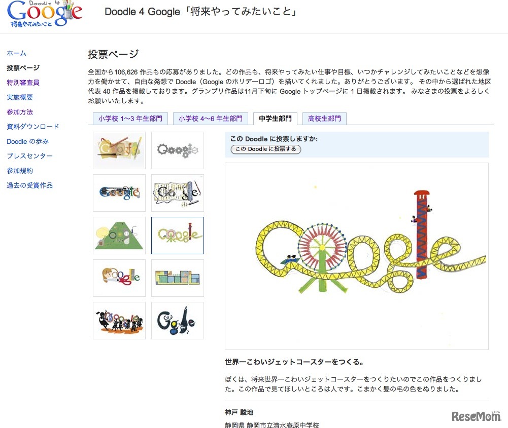 Google(グーグル)は10月31日、全国の小中高生を対象としたロゴデザインコンテスト「Doodle 4 Google」のオンライン投票を開始した。