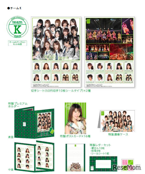 「AKB48チーム別フレーム切手セット」が11月8日、全国の郵便局(カタログ販売のみ)と郵便局のネットショップ(郵便局ウェブサイト内)で販売開始される。
