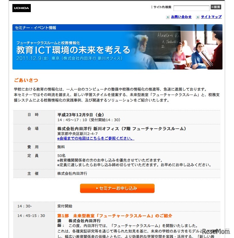内田洋行では、教育関係者向けセミナー「教育ICT環境の未来を考える〜フューチャークラスルームと校務情報化〜」を12月9日に実施する。