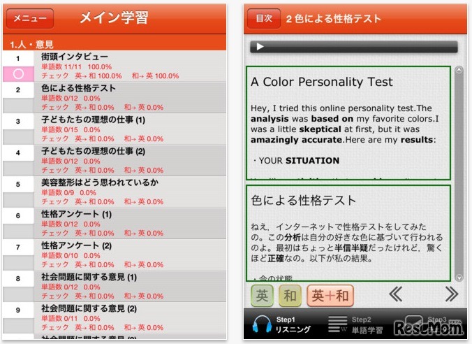 ブックモールジャパンは11月30日、「学参ドットコム」ブランドのiPhone向け学習アプリの新作としてZ会の「速読速聴・英単語」シリーズ4作をApp Storeにて発売した。