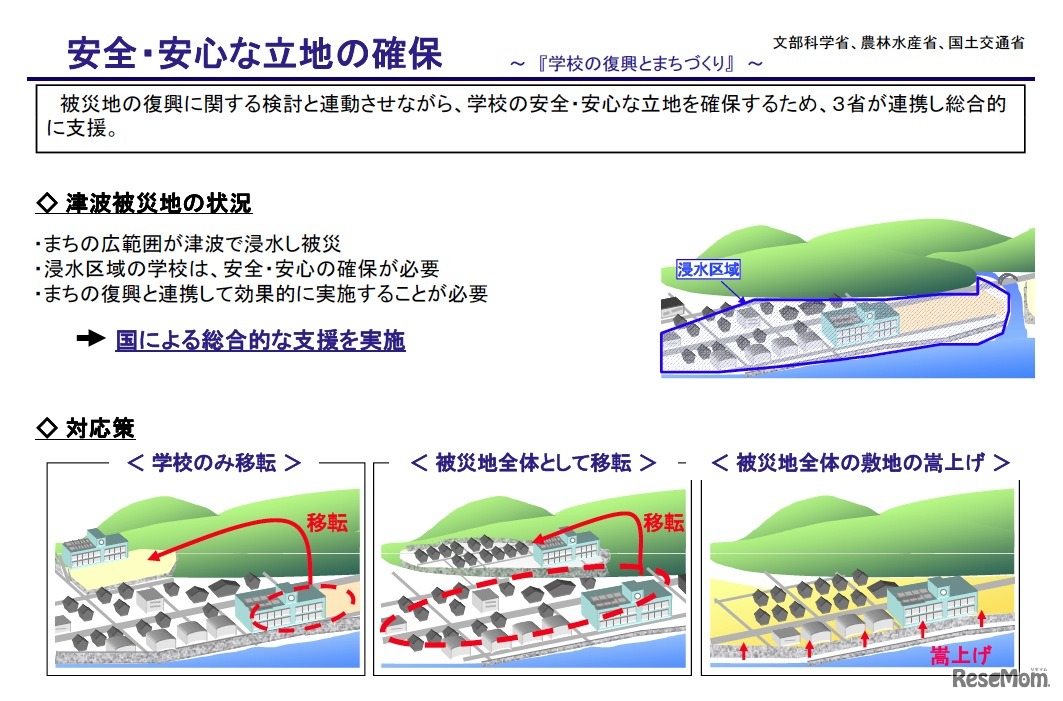 国土交通省と文部科学省、農林水産省は12月6日、「学校の復興とまちづくり〜3省連携による復興支援〜」について発表した。