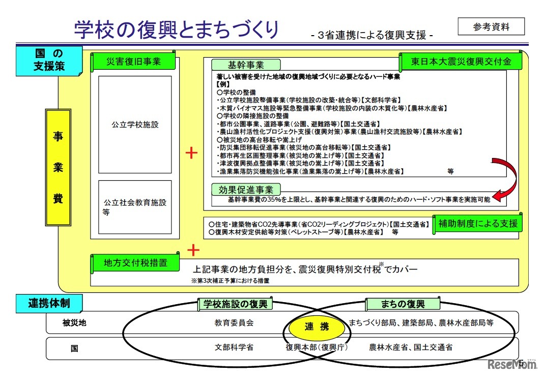 国土交通省と文部科学省、農林水産省は12月6日、「学校の復興とまちづくり〜3省連携による復興支援〜」について発表した。