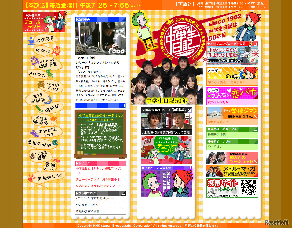 NHKの長寿番組「中学生日記」の公式Webサイトに、「生徒役オーディションについてのお知らせ」が掲載されたことを受け、番組終了ではないかとの情報が飛び交っている。