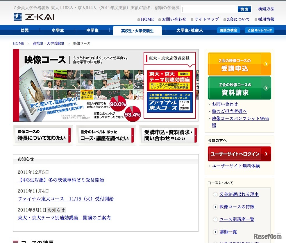 Z会の映像教材配信事業を行う「Z会の映像コース」では、中学生対象を対象とした「中3冬期単科ゼミ」の映像配信を12月6日より開始した。