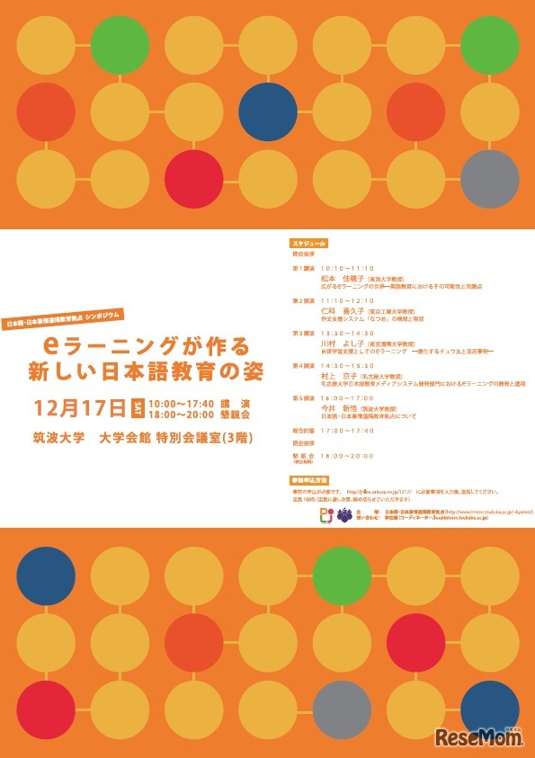 筑波大学日本語・日本事情遠隔教育拠点は、シンポジウム「eラーニングが作る新しい日本語教育の姿」を12月17日に筑波大学において開催する。