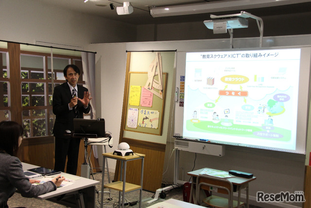「教育スクウェア×ICT」は、教育クラウドをベースに学校と家庭をブロードバンド環境でつなぎ、授業や教材開発の効率化、連絡網、校務システムなどを支援することを目的に今年度スタートした民間のプロジェクトだ。