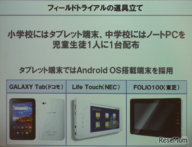 利用している端末は、3種類のタブレットPCと中学生(英語)用のノートPC