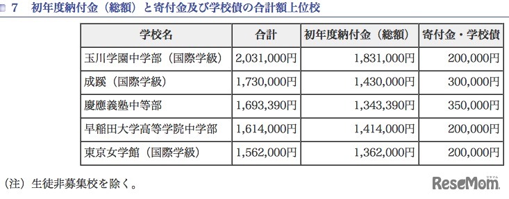 東京都生活文化局は12月7日、都内の私立中学校の平成24年度の初年度納付金の状況をとりまとめ、ホームページに掲載した。