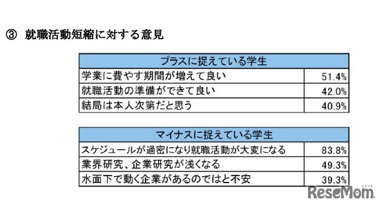 就職活動短縮に対する意見