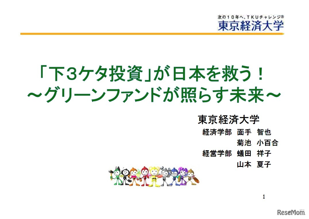 東京経済大学経済学部・経営学部/「下3ケタ投資」が日本を救う! ~グリーンファンドが照らす未来~