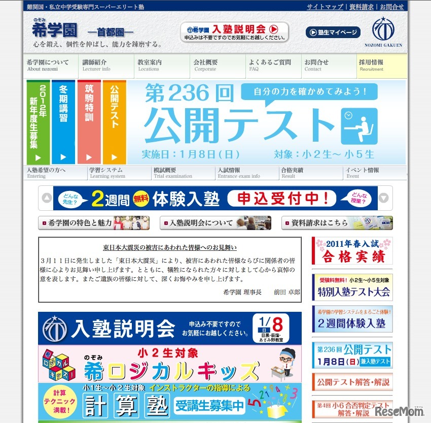 希学園は12月16日、お茶の水教室で「新小3ベーシック講座(国語・算数)」を2012年2月に新規開講すると発表した。国語・算数のいずれか1科目のみの受講も可能となっている。