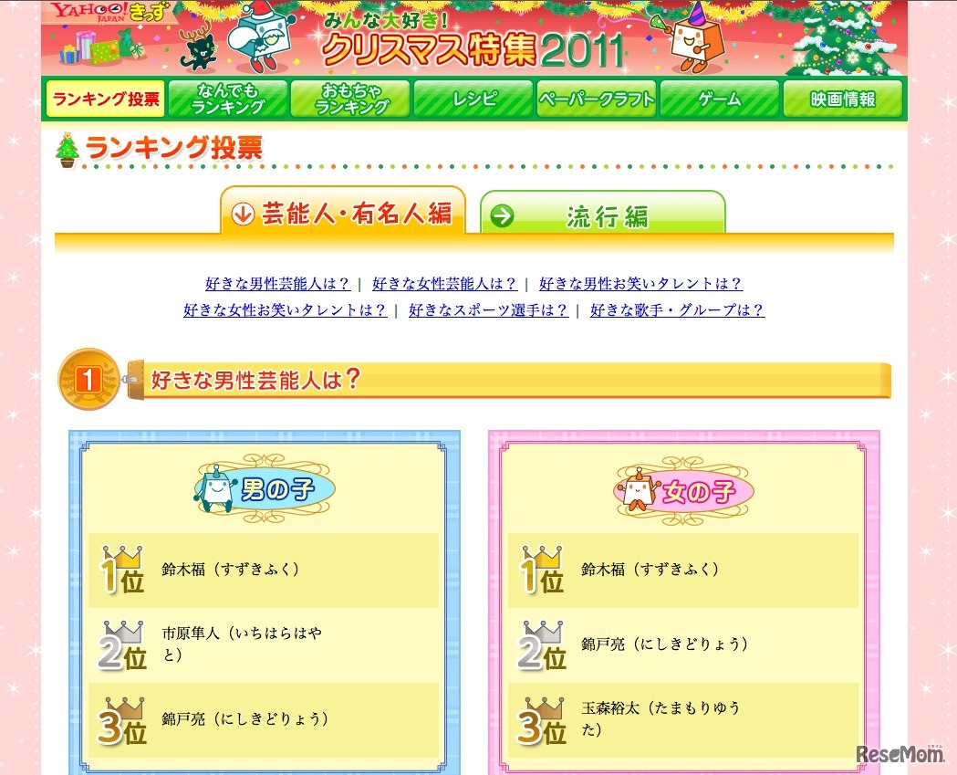 Yahoo!きっずは12月19日、「みんな大好き! クリスマス特集2011」内に2011年の検索ワードランキング「みんながよく調べる言葉」と「2011年を振り返るランキング投票」の結果を公開した。
