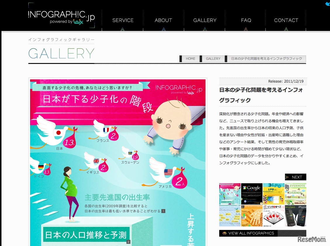 アイオイクスは12月19日、独自に作成したオリジナルインフォグラフィックを紹介する「infographic.jp」にて、日本の少子化問題をまとめたインフォグラフィック「日本が下る少子化の階段」を公開した。