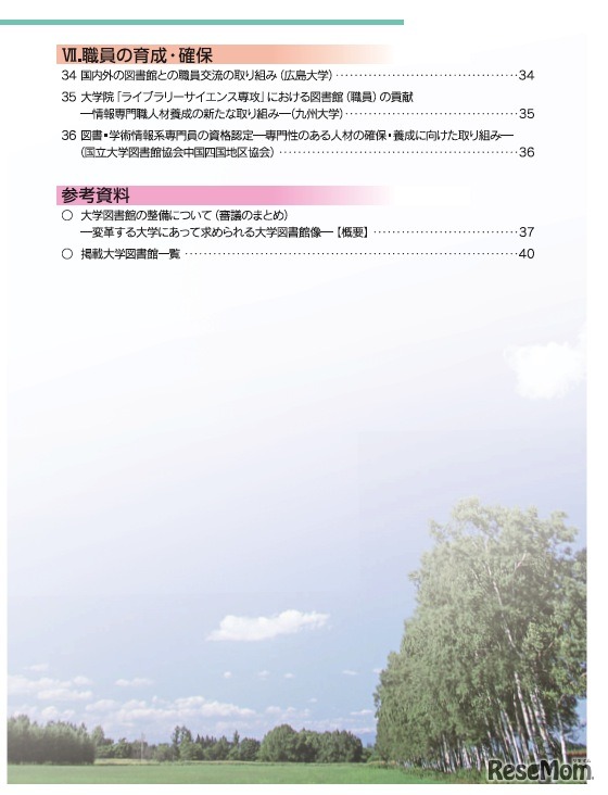 文部科学省は、「大学図書館における先進的な取り組みの実践例-大学の学習・教育・研究活動の質的充実と向上のために-」と題した資料をホームページに公開している。お茶の水女子大学など9大学の事例を紹介している。