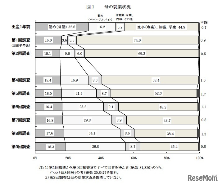 厚生労働省は、第9回「21世紀出生児縦断調査(平成13年出生児)」の結果をホームページで公開している。同調査は、同一客体を長年にわたり追跡する縦断調査として、平成13年度から実施しているもの。