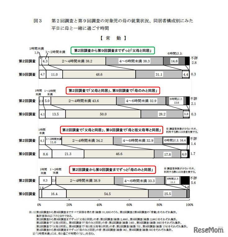 厚生労働省は、第9回「21世紀出生児縦断調査(平成13年出生児)」の結果をホームページで公開している。同調査は、同一客体を長年にわたり追跡する縦断調査として、平成13年度から実施しているもの。