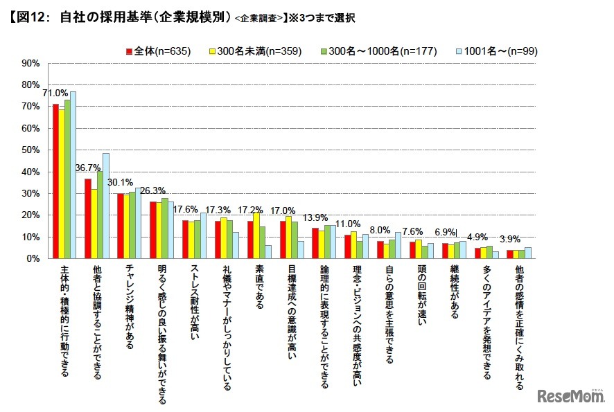 自社の採用基準/企業規模別(企業調査)