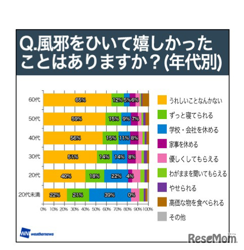 ウェザーニュースは12月27日、風邪の治療法や熱が何度まで出たら学校を休むかなど、「冬の風邪事情」をテーマとした調査結果を発表。全国の男女20,175人からの回答を集計し、年代別や都道府県別の分析を行っている。