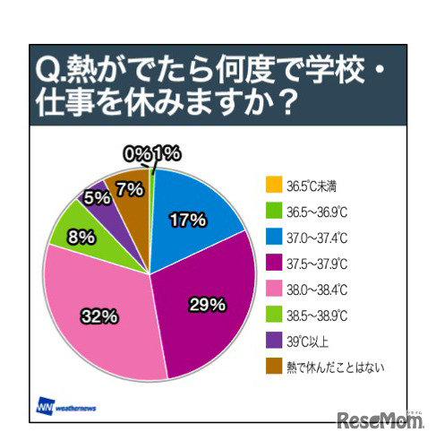 ウェザーニュースは12月27日、風邪の治療法や熱が何度まで出たら学校を休むかなど、「冬の風邪事情」をテーマとした調査結果を発表。全国の男女20,175人からの回答を集計し、年代別や都道府県別の分析を行っている。
