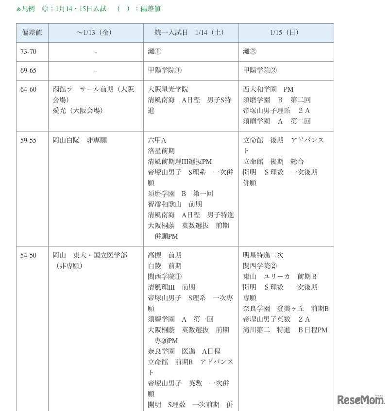 能開センターは1月5日、2012年度入試予定日を反映した公開模試偏差値一覧をホームページで公開。同一覧表は、中学受験公開模試における成績をもとに、入試の合否結果を照合させて決定した合格可能生80%ラインを偏差値に換算して表したもの。
