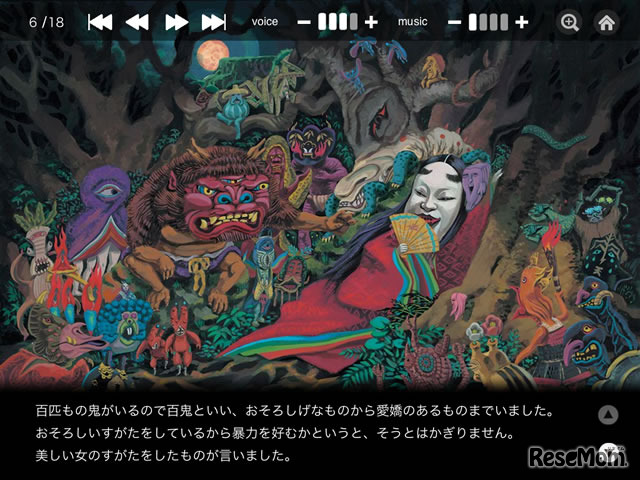もうすぐ節分。今回は「鬼」をキーワードに、絵本アプリを紹介したい。「新・今昔物語絵本 鬼のかいぎ」、立松和平/文、よしながこうたく/絵。エルエスアイより配信中。