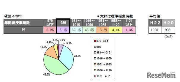 文部科学省は、「平成23年度公立小・中学校における教育課程の編成・実施状況調査」の結果について公開している。調査項目は、平成22年度の年間の総授業時数および授業日数、平成23年度の年間総授業時数、今年度から年間総授業時数を増やす取組み等の計画。