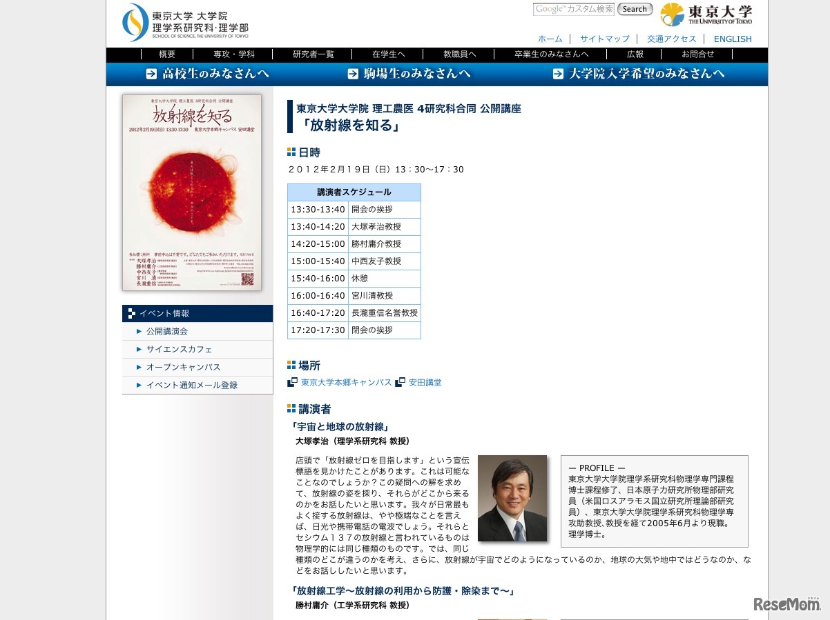 東京大学は、同大学院 理工農医 4研究科合同 公開講座「放射線を知る」を2月19日に東大本郷キャンパス 安田講堂にて開催する。事前申込みは不要で参加費は無料、誰でも参加することができる。