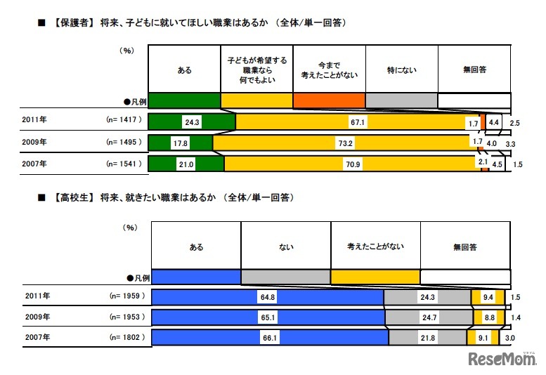 【保護者】将来、子どもに就いてほしい職業はあるか/【高校生】将来、就きたい職業はあるか