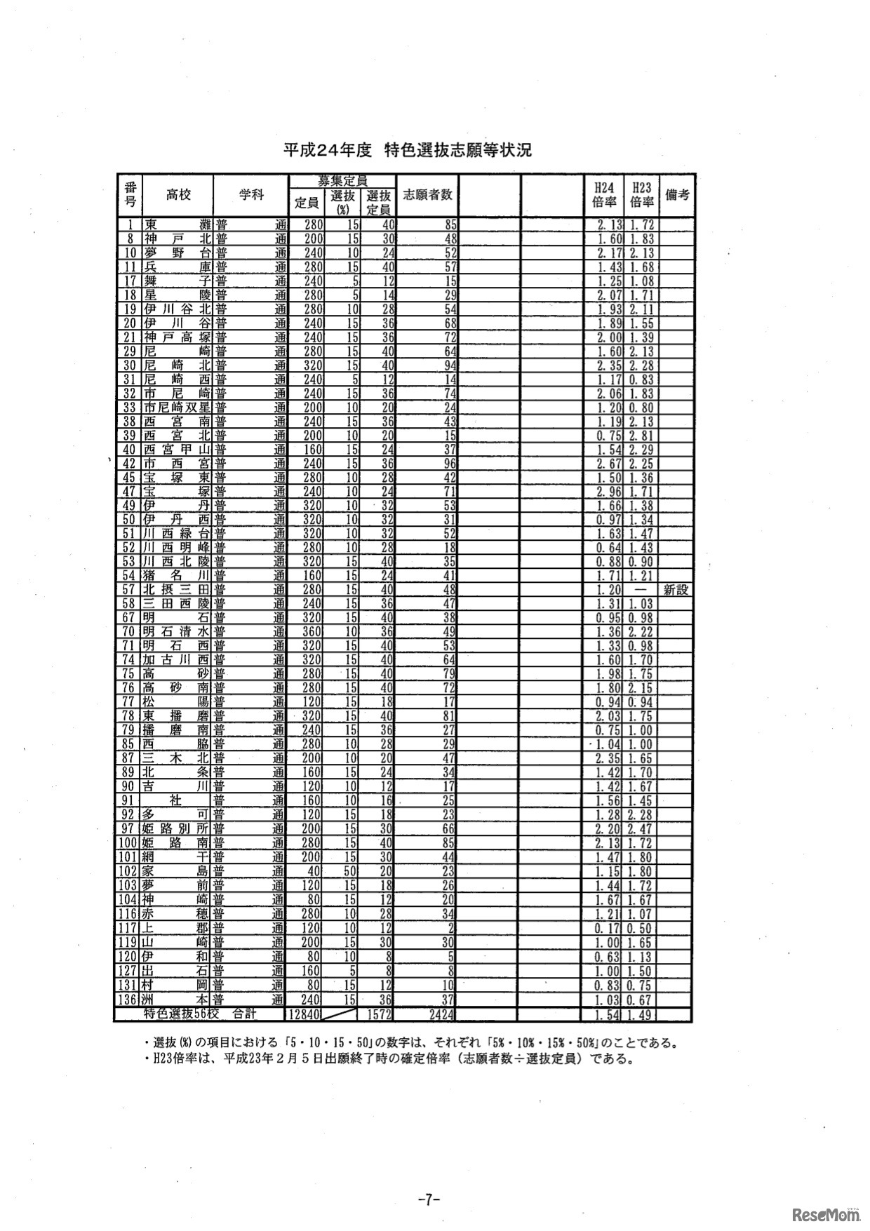 【高校受験】H24兵庫県公立高の推薦・特色選抜募集状況 4枚目の写真・画像