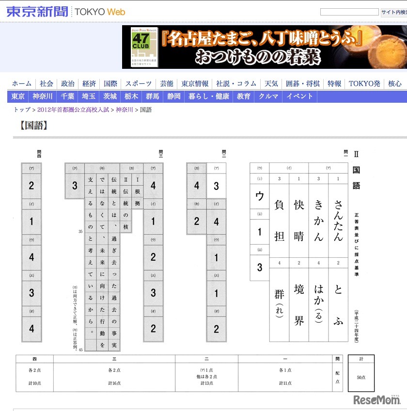 東京新聞は2月16日、特集ページ「2011年首都圏公立高校入試」において、同日行われた神奈川県公立高等学校入学者選抜・後期選抜の学力検査の問題と正答の掲載を開始した。