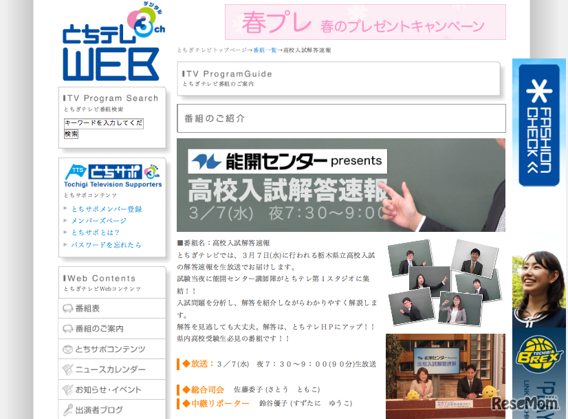 とちぎテレビ、高校入試解答速報