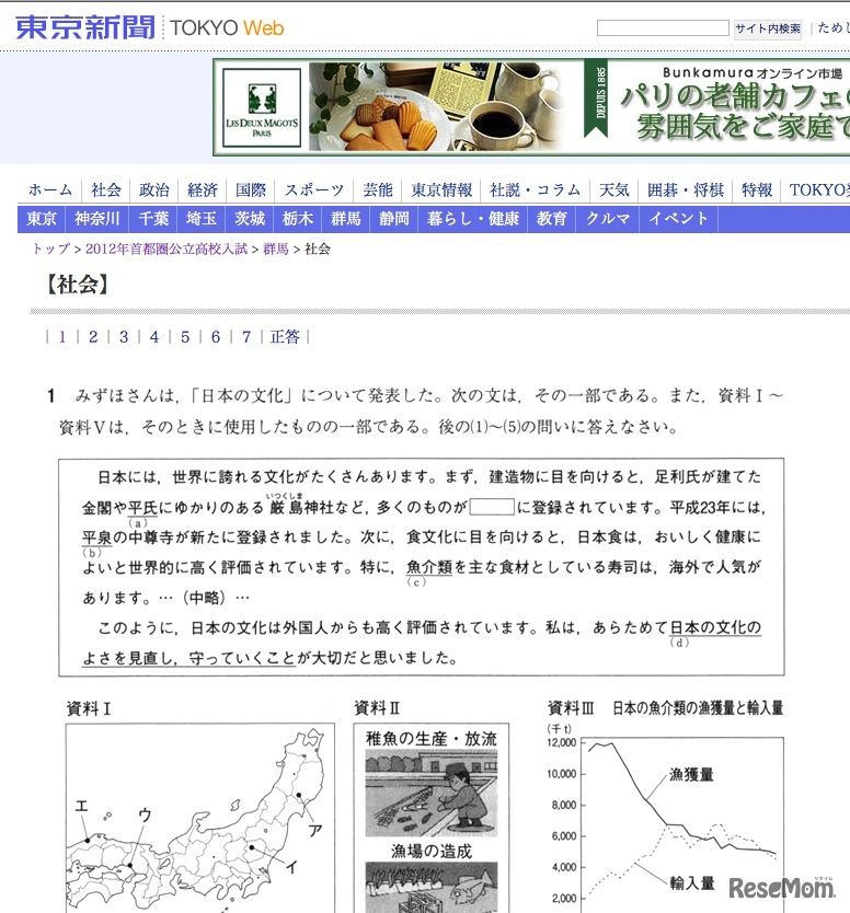 東京新聞は3月8日、特集ページ「2012年首都圏公立高校入試」において、同日行われた平成24年度群馬県公立高等学校入学者選抜・後期選抜の学力検査の問題と正答の掲載を開始した。