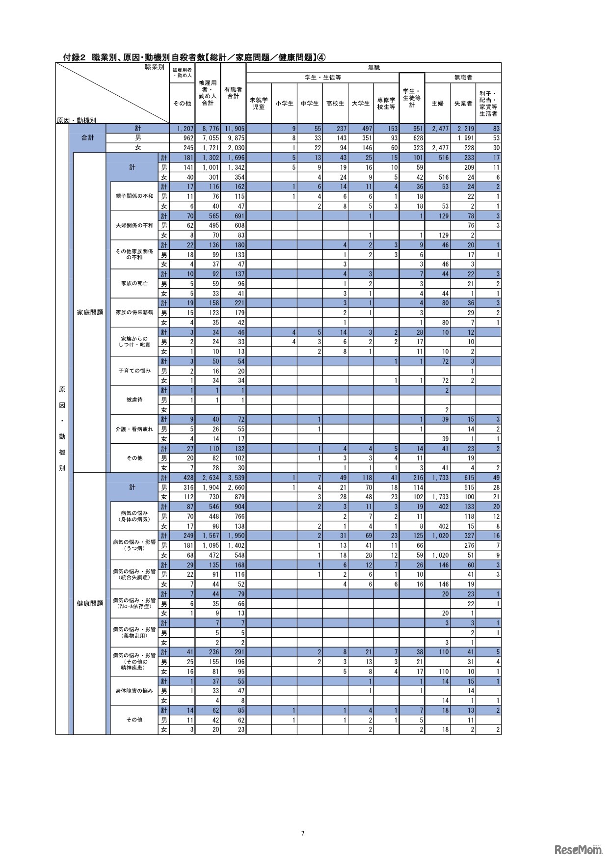 警察庁は3月9日、平成23年中における自殺の状況についてまとめた資料をホームページに公開した。自殺者の総数は30,651人で、前年に比べ1,039人(3.3%)減少したが、職業別では「学生・生徒等」だけが前年より増加している。