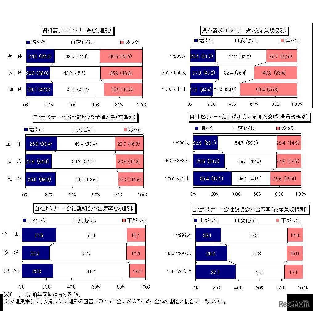 資料請求・エントリー数/自社セミナー等の参加人数/会社説明会等の出席率