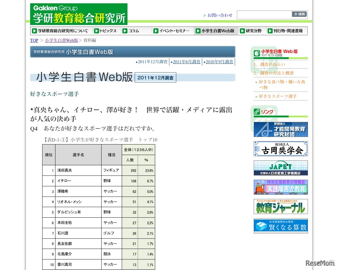 学研教育総合研究所は3月19日、小学生白書Web版の新コンテンツ「小学生の消費生活に関する調査」(2011年12月調査)の公開を開始した。同調査は、全国の子どもをもつ既婚者5,262人に対して予備調査を行い1,560人を抽出し、学年ごとに約200名の回答を集計している。
