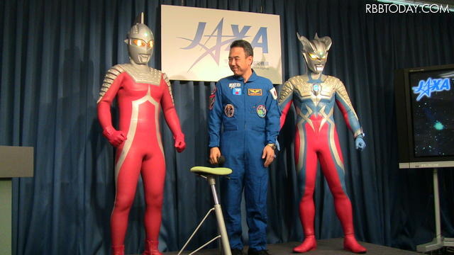 22日、宇宙航空研究開発機構(JAXA)の東京事務所にて、JAXAの宇宙飛行士 古川聡氏と、ウルトラセブンとの公開取材イベントが開催された。