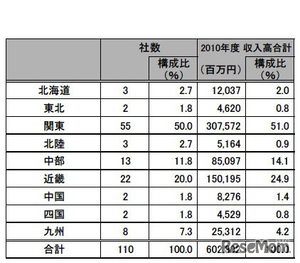 帝国データバンクは3月22日、学習塾・予備校の主要110社の経営実態調査結果を発表した。同調査は、2012年2月時点の企業概要データベースから、2010年度の収入高が判明した学習塾等110社を対象に、収入高総額推移、収入高前期比較、損益状況等を分析したもの。