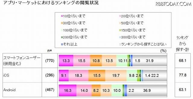 アプリマーケットにおけるランキング閲覧状況