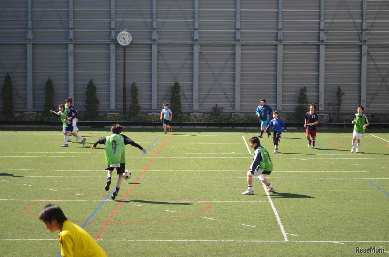 3月25日、北区滝野川にある桜丘中学・高等学校が小学校高学年生徒を対象に、サッカー体験会を開催した。体験会に集まった男女9名の小学生は、翌日に試合を控えた同校中学のサッカー部員と一緒に3時間ほど汗を流した。