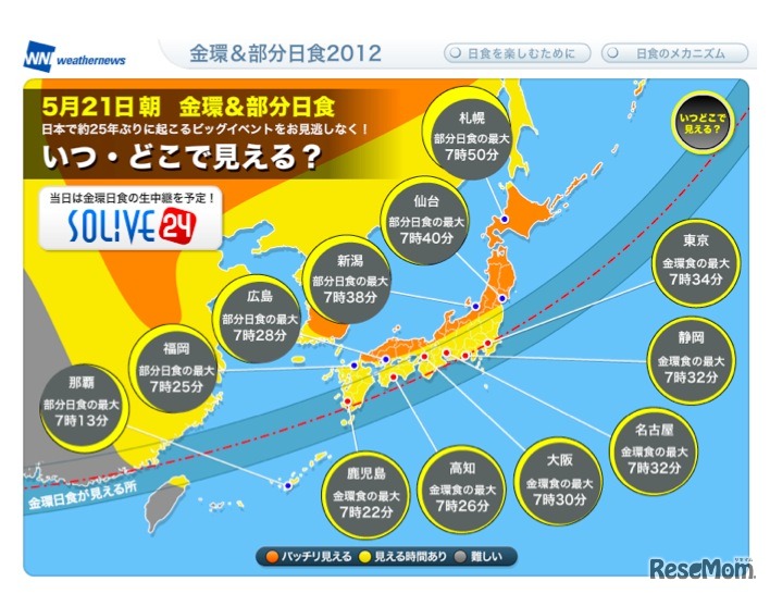ウェザーニューズ、国内外7箇所から金環日食ライブ中継 2枚目の写真・画像