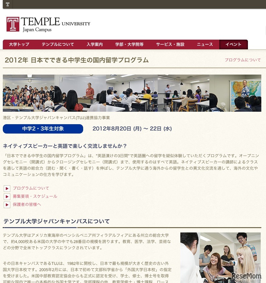 テンプル大学、小学生〜高校生対象の夏期英語プログラム 4枚目の写真・画像