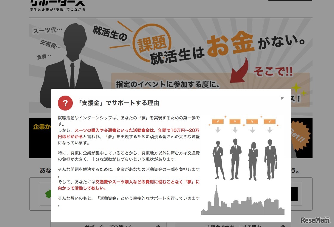 インターネットの事業開発を行うベンチャー企業であるVOYAGE GROUPは5月23日、今年4月に設立した学生の就職活動を支援する株式会社サポーターズにおいて、学生の就職活動資金の一部を企業が「支援金」としてサポートするサービス「サポーターズ」を開始した。