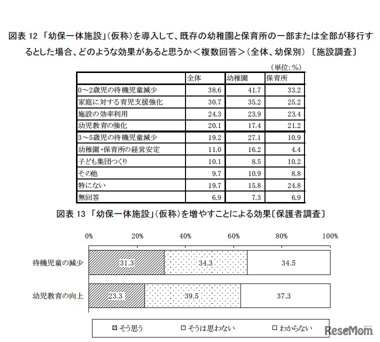 第一生命保険のシンクタンク、第一生命経済研究所は、幼稚園・保育所の園長と保護者を対象に実施した「幼保一体化に関するアンケート調査」の結果を公開している。