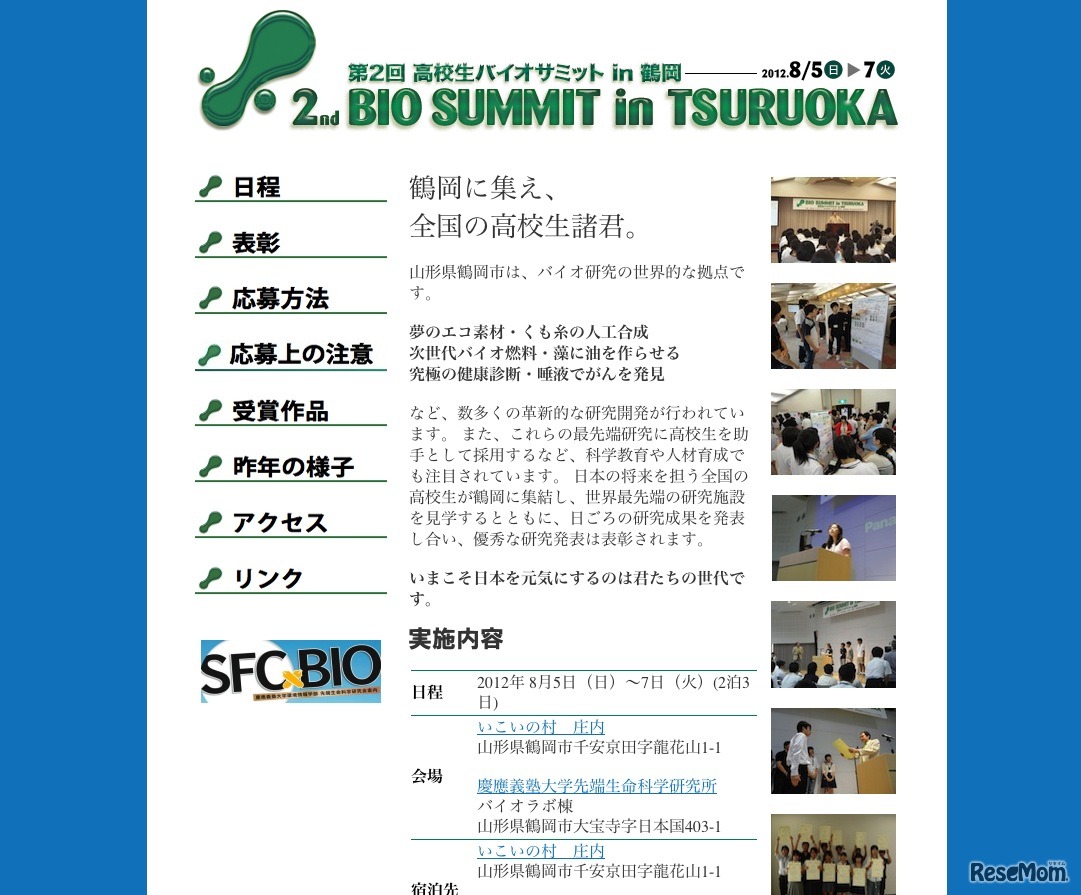 慶應義塾大学先端生命科学研究所・山形県・鶴岡市で構成される高校生バイオサミット実行委員会では、8月5日から7日に開催する「第2回 高校生バイオサミットin鶴岡」の参加者を募集している。