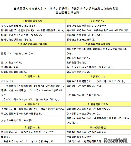 無料BSチャンネル「Dlife(ディーライフ)」は6月20日、20代から40代の既婚女性を対象に、夫婦喧嘩の実態について訊いた「夫婦間リベンジ」調査の結果を発表した。