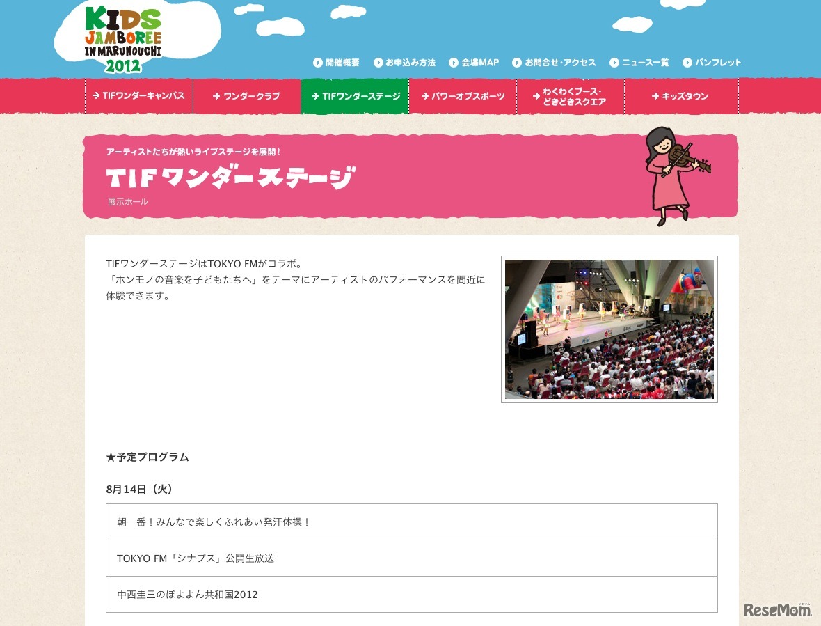 東京国際フォーラムは6月25日、幼児から中学生までの子どもとその保護者を対象としたイベント「丸の内キッズジャンボリー2012」の開催について発表した。夏休み期間中の8月14日、15日、16日に開催する。
