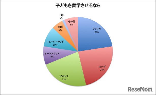 リセマムは、Webサイトで留学に関するクリックアンケートを実施。小学生から大学生までの子どもを持つ読者を対象に、子どもを留学させる場合の希望留学先を聞いた。