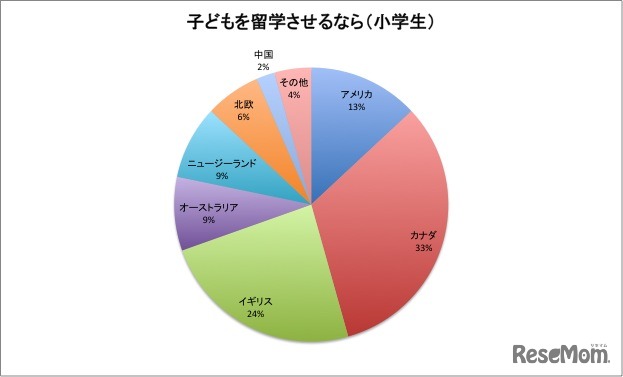 リセマムは、Webサイトで留学に関するクリックアンケートを実施。小学生から大学生までの子どもを持つ読者を対象に、子どもを留学させる場合の希望留学先を聞いた。