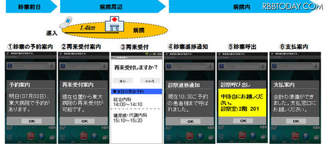 NTTドコモは17日、東京大学医学部附属病院とともに、外来患者の診察までの待ち時間を有効活用し、ストレス等の軽減を図る「携帯電話を用いた外来患者受付システム」等、4つの医療支援システムを共同開発したことを発表した。